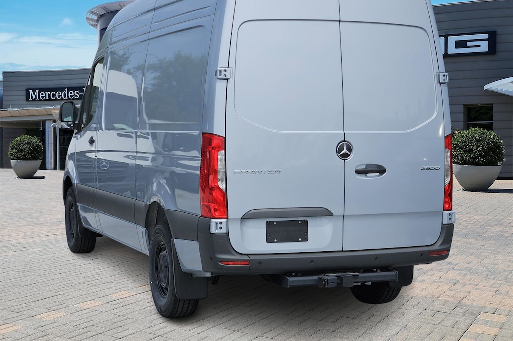 Our Diesel powered 2025 Mercedes-Benz Sprinter 2500 High Roof Cargo Van is good to go the extra mile to help get things done in Graphite Grey! Motivated by a TurboCharged 2.0 Liter Diesel 4 Cylinder providing 170hp and 295lb-ft of torque to a 9 Speed Automatic transmission to help pull massive payloads. This Rear Wheel Drive van also has composed handling for confident road control, and it wears a bold grille star to let the world know you're in a premium work machine. Features like a sliding passenger-side door, heated power mirrors, swing-out rear cargo doors, and daytime running lights are standard for Sprinter practicality.