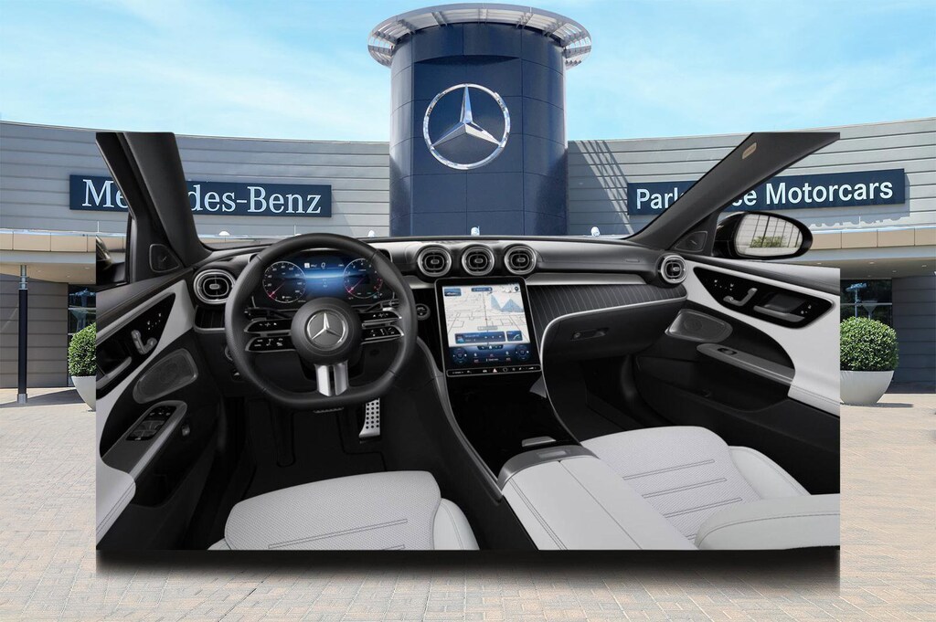 Many premium features are standard in our C 300 Exclusive cabin, including heated MB-Tex power front seats, a leather-wrapped steering wheel, dual-zone automatic climate control, ambient lighting, and a sophisticated Burmester® audio system with Sound Personalization. Say Hey Mercedes, and the infotainment system is ready to answer with a 12.3-inch driver display, an 11.9-inch touchscreen, wireless Android Auto®/Apple CarPlay®, MB Navigation, Bluetooth®, and WiFi compatibility.